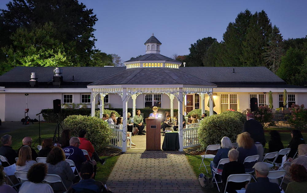 Event organizer Harriet Burak addresses the audience at last year’s celebration. (Jay Turner photo)